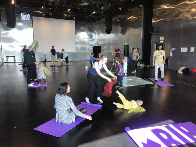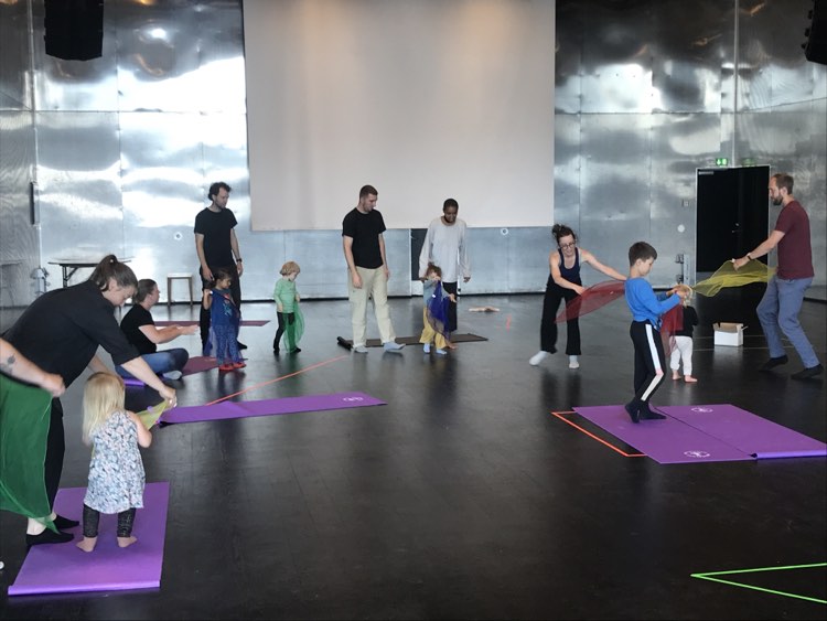 Sammen prøver vi legende måder at flyve på. Dette inkluderer også fald og landing samt tillid og modet til at flyve videre igen.
